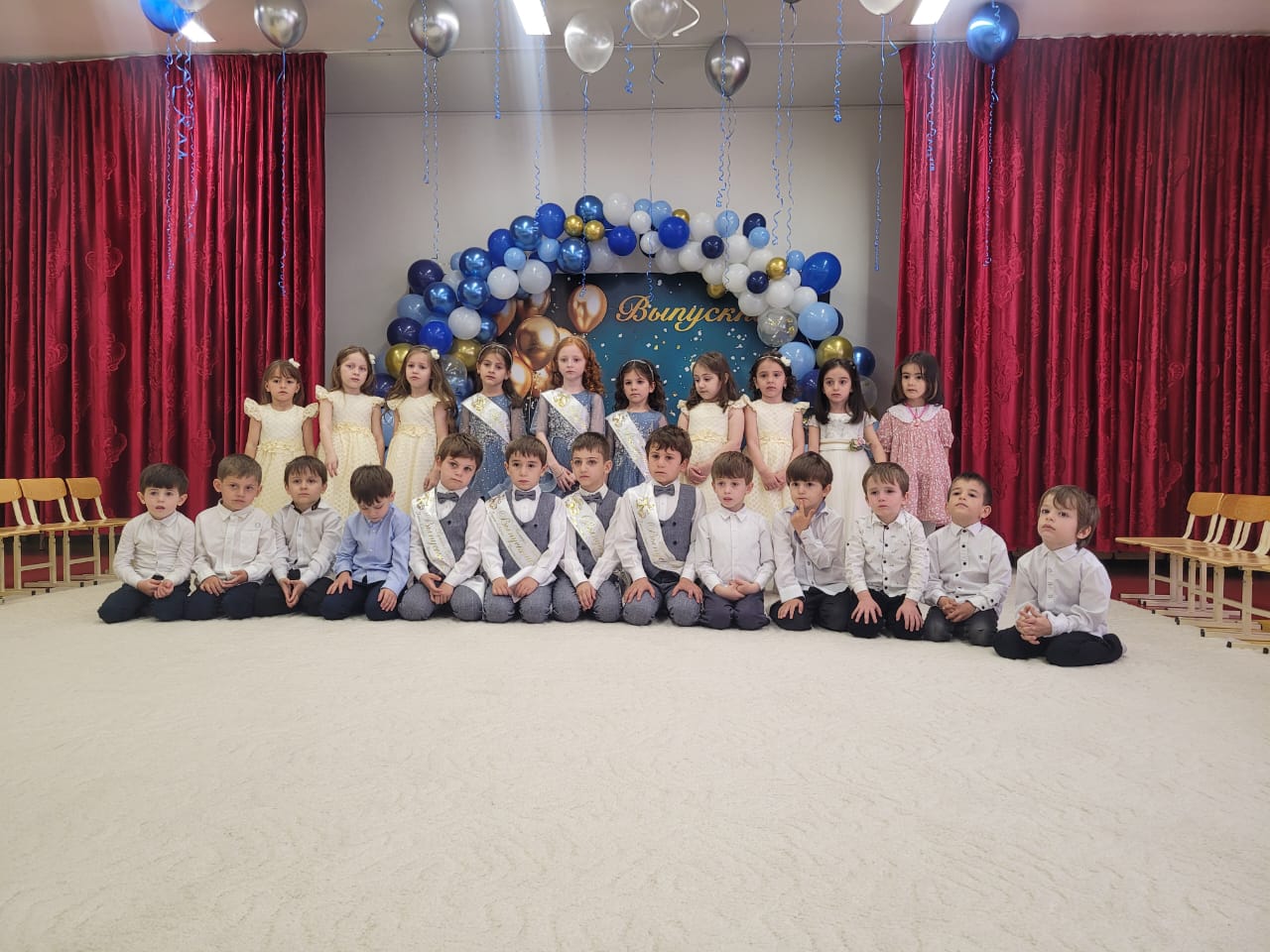 27.05.2024В МБДОУ «Детский сад «Нана» с.Памятой был выпускной бал — это особое событие для каждого ребенка и его родителей, это первая ступенька во взрослую жизнь. С одной стороны это радостный, долгожданный праздник, с другой — немного грустное событие. Радостно воспитателям от того, что их воспитанники переходят на новую жизненную ступеньку, а грустно — что приходится расставаться с такими милыми, уже ставшими родными детьми. Выпускной бал прошел в теплой, дружеской обстановке. Начался праздник с торжественного выхода выпускников — дети как-то сразу повзрослели: красивые, нарядные, они стали похожи на школьников. В течение всего утренника они показали свои знания и умения, которые приобрели за годы, проведенные в детском саду: спели много песен, рассказали стихи, порадовали танцами. По сложившийся доброй традиции заведующая детским садом пожелала выпускникам доброго пути, успешной учебы и конечно же, не забывать родной детский сад. Выпускникам были вручены дипломы об окончании детского сада. В конце праздника дети выпустили в небо воздушные шары. Ярким и запоминающимся стал для детей выпускной в детском саду.